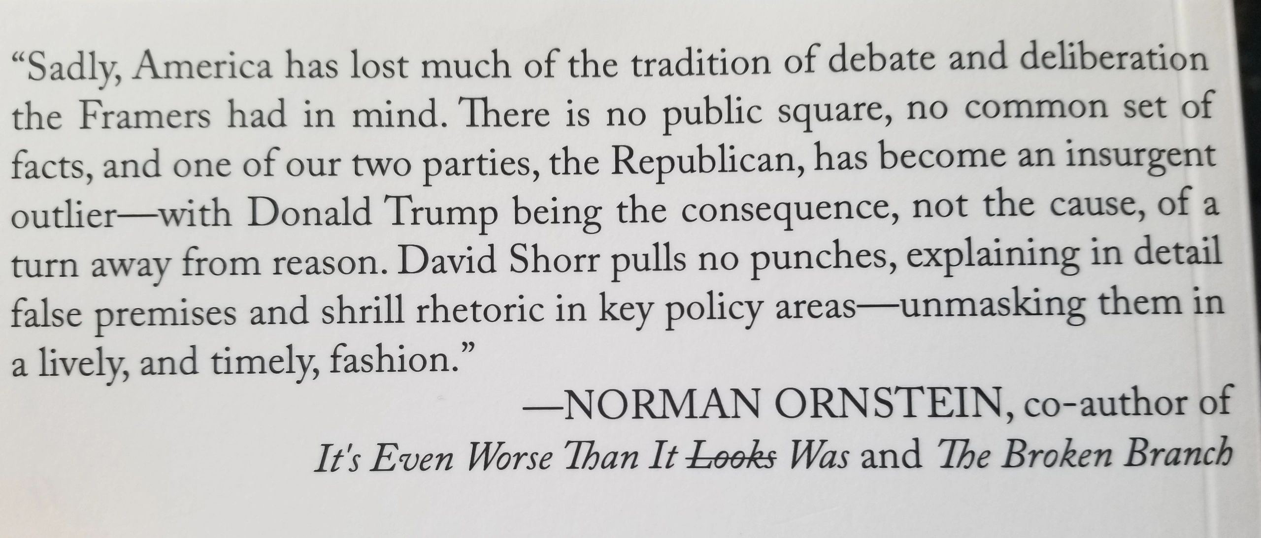 Political scientists Ornstein and Mann offered prescriptions for our system of governance, fixes for the legislative and electoral processes. As an advocate, I wanted to combat asymmetric polarization by cutting through Republican bullshit arguments and proposals, revealing how divorced from reality they were.